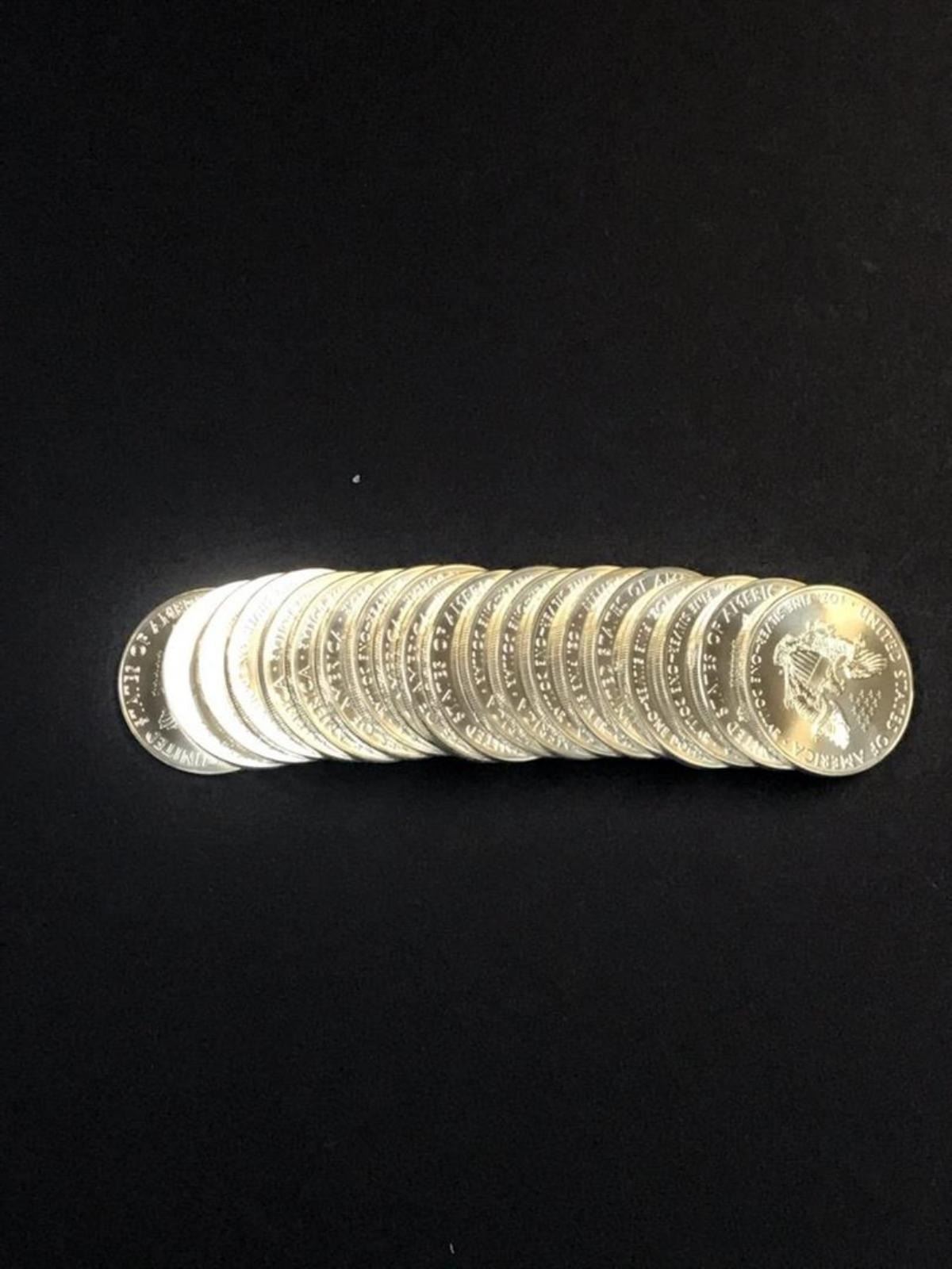 One set (20 COUNT) 2021 American Silver Eagle .999 Fine Silver Dollar Coin.