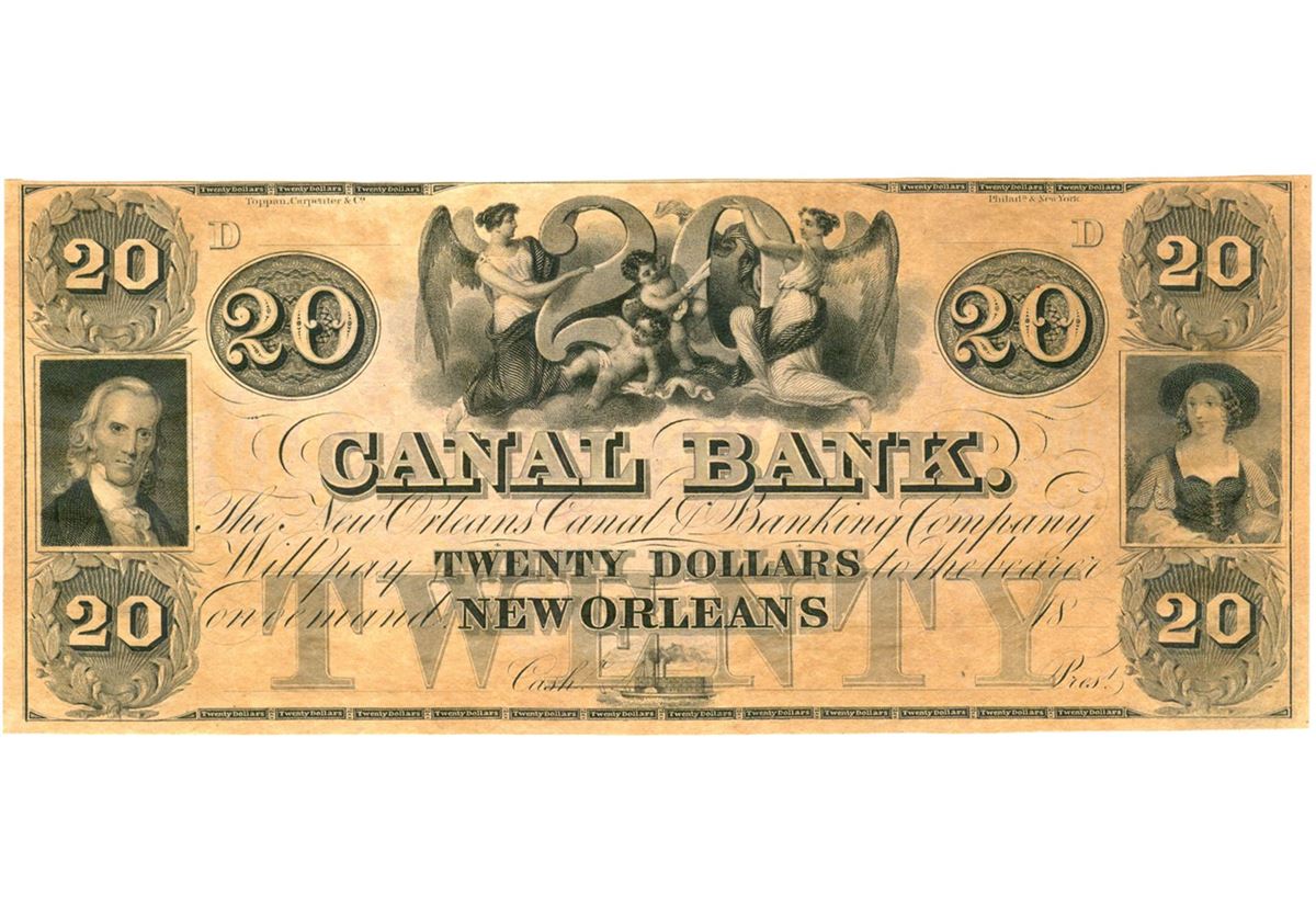 One $20 New Orleans Louisiana Canal Banking Company Large Note.