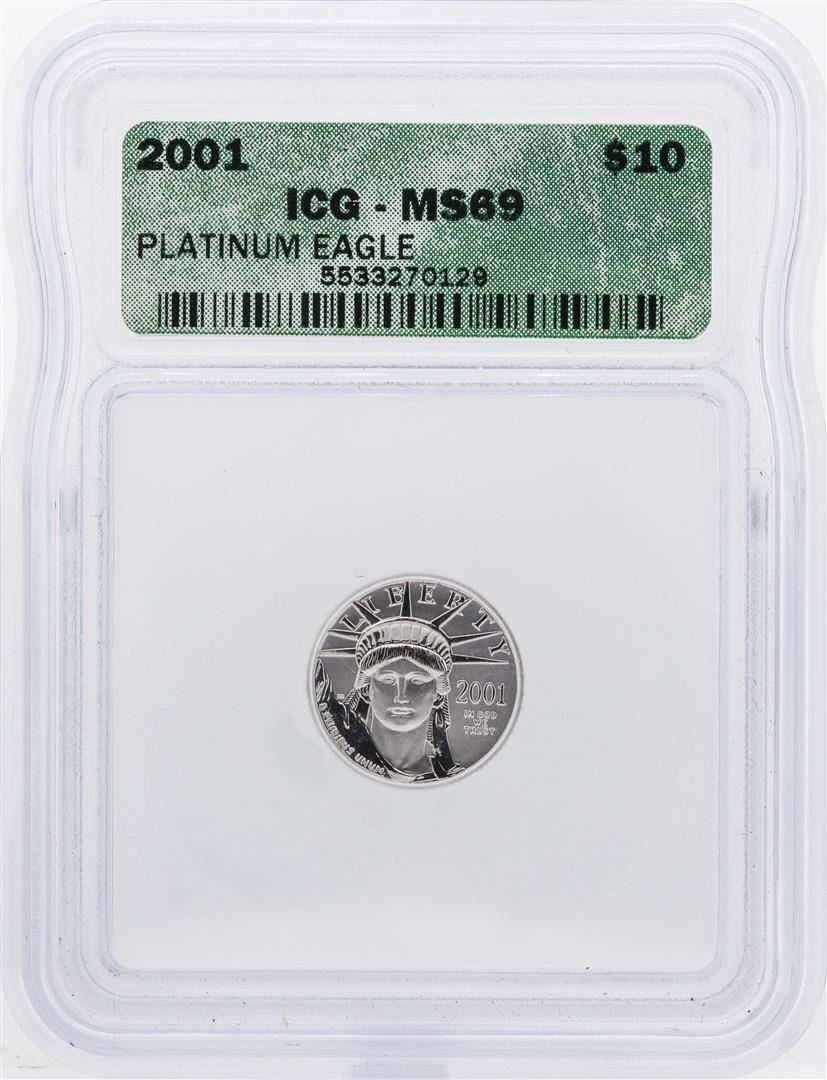 One 2001 $10 Platinum American Eagle Coin ICG MS69. ICG Appraised.