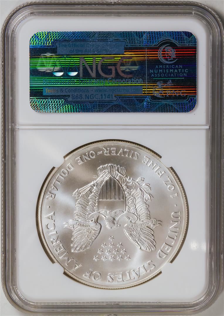 One 2002 American Silver Eagle .999 Fine Silver Dollar Coin NGC MS69.