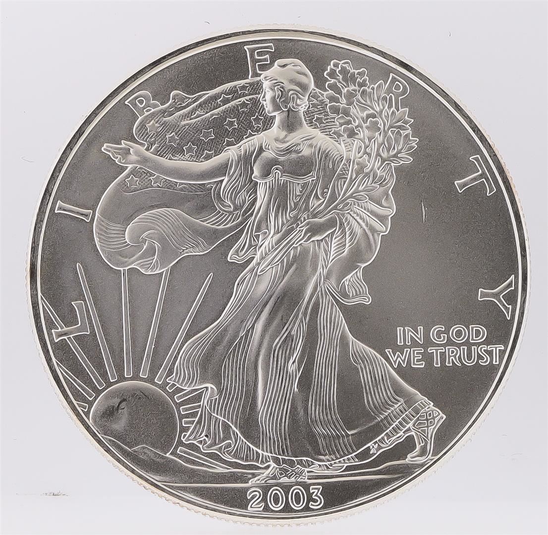 One 2003 American Silver Eagle Dollar Coin.