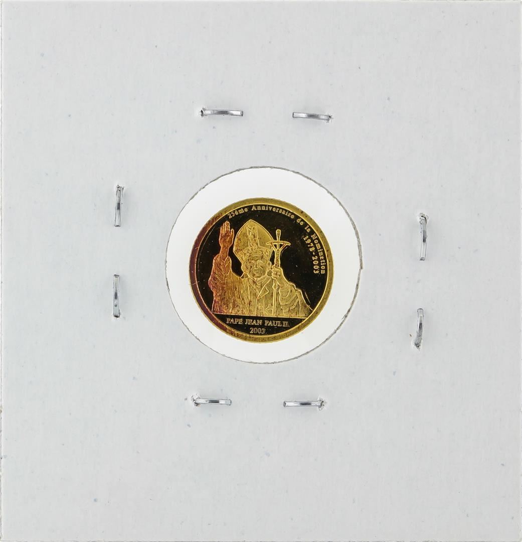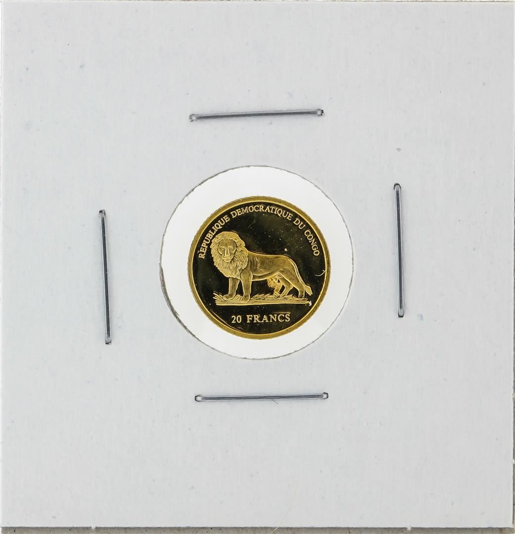 One 2003 Congo 20 Francs 1/25 oz Gold Coin.
