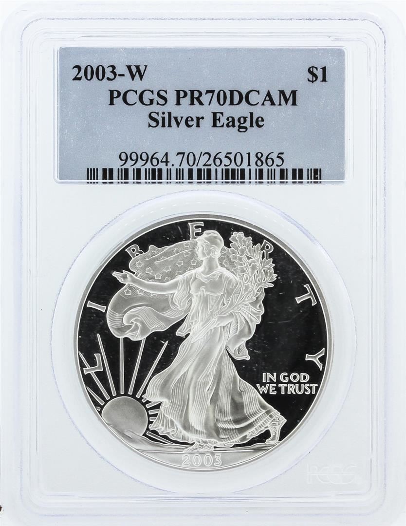 One 2003-W PCGS PR70DCAM Silver Eagle Silver Dollar. PCGS Certified.