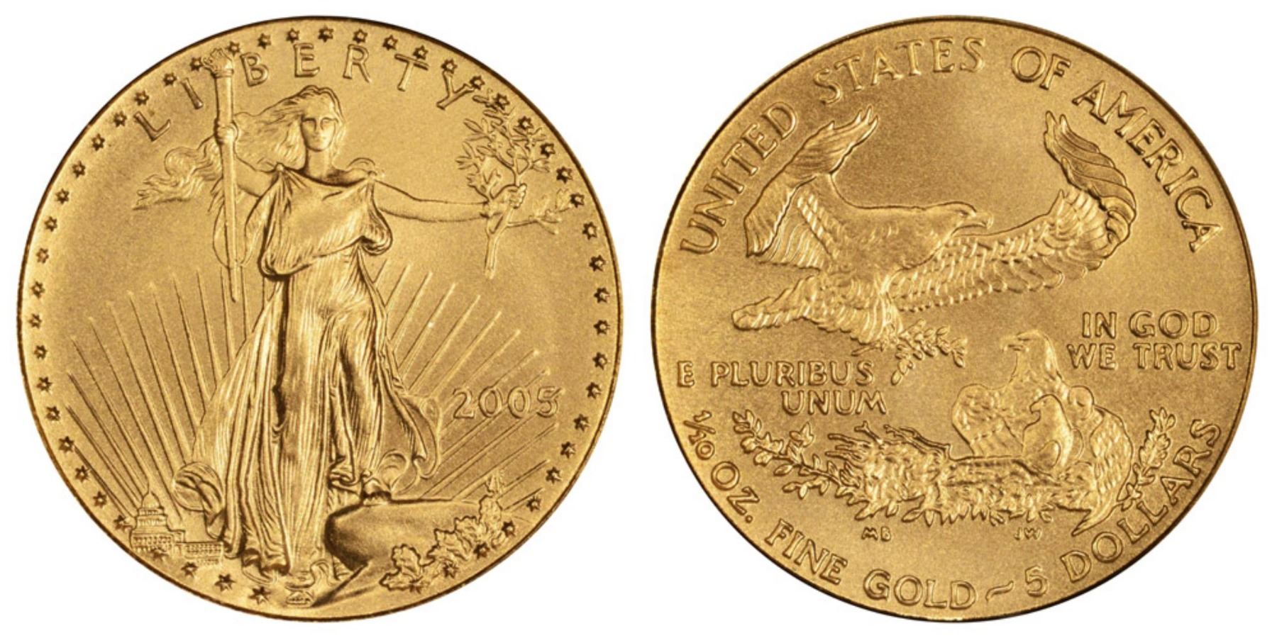 One 2005 $5 American Eagle Gold Coin.