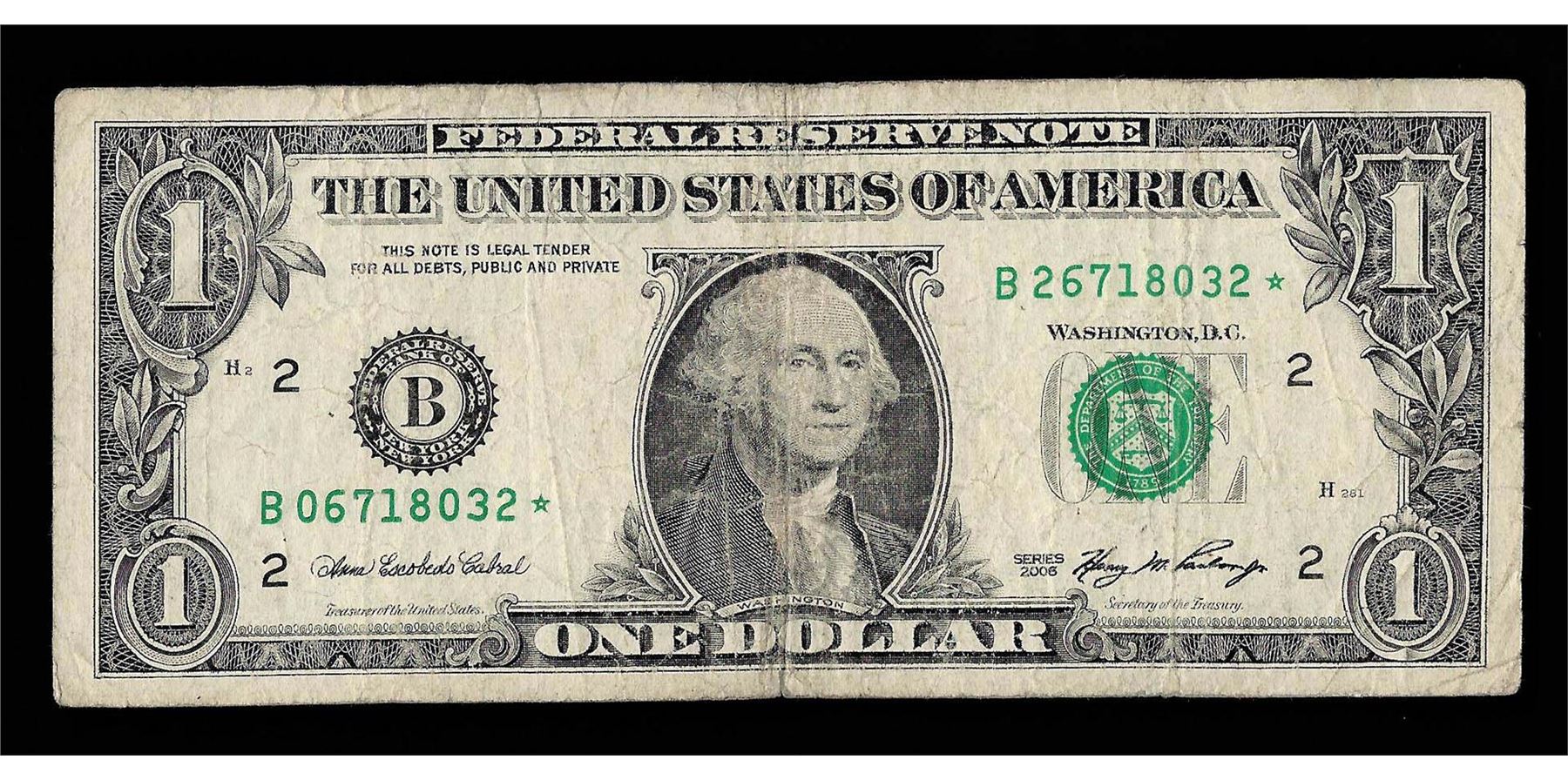 One 2006 $1 Federal Reserve Note Star ERROR Mismatching Serial Number.