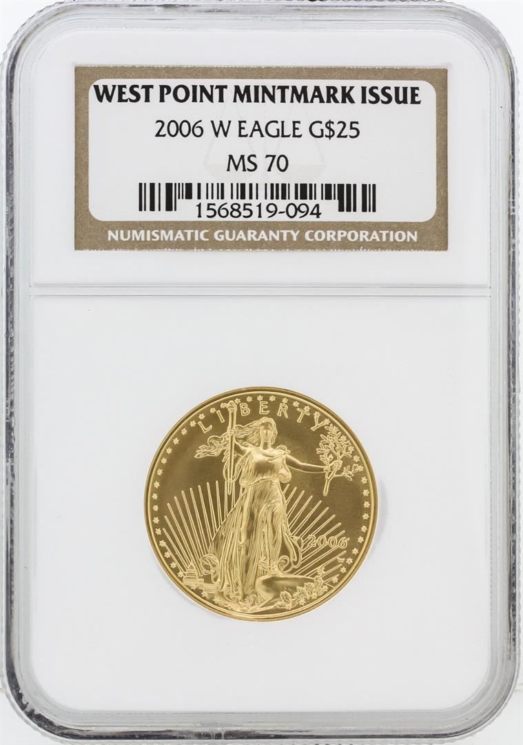 One 2006-W NGC MS70 $25 West Point Mintmark Issue American Eagle Gold Coin. NGC Certified.
