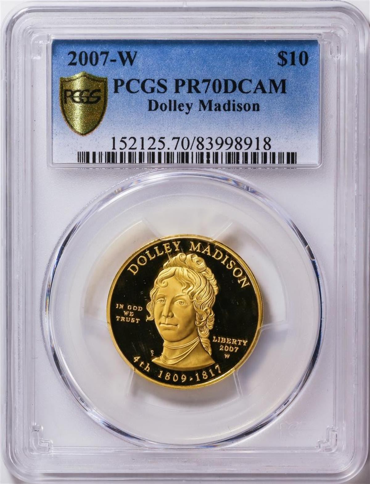 One 2007-W $10 Dolley Madison Gold Coin PCGS PR70DCAM.