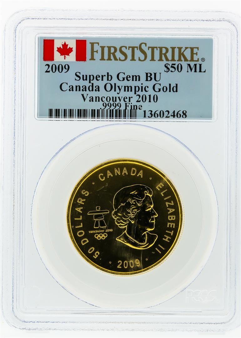 One 2009 Canada PCGS Superb Gem BU $50 Vancouver 2010 Olympic 1 Ounce Gold Coin. PCGS Certified.