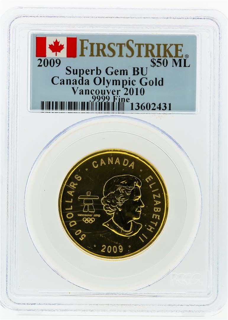 One 2009 Canada PCGS Superb Gem BU $50 Vancouver 2010 Olympic 1 Ounce Gold Coin. PCGS Certified.