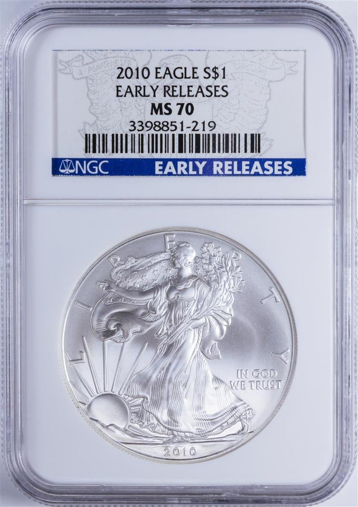 One 2010 $1 American Silver Eagle NGC MS70 Early Releases.
