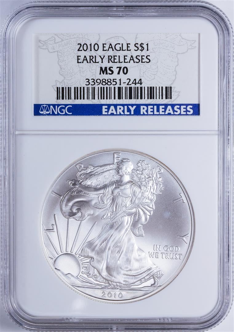 One 2010 $1 American Silver Eagle NGC MS70 Early Releases.