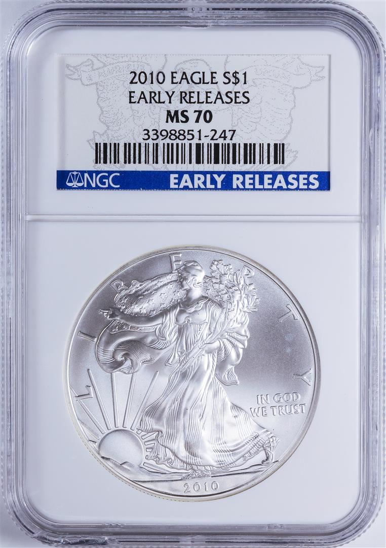 One 2010 $1 American Silver Eagle NGC MS70 Early Releases.