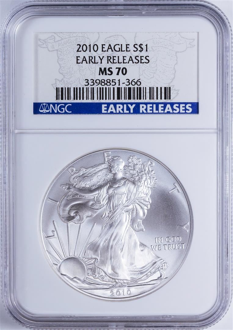 One 2010 $1 American Silver Eagle NGC MS70 Early Releases.