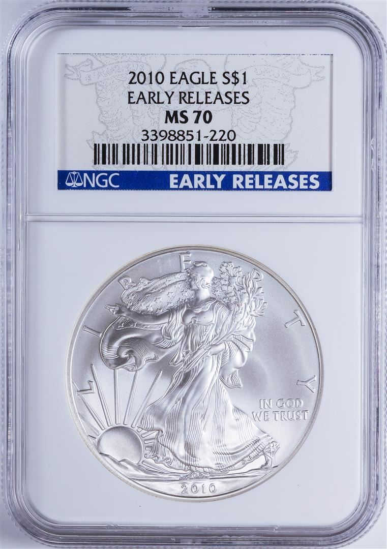 One 2010 $1 American Silver Eagle NGC MS70 Early Releases.