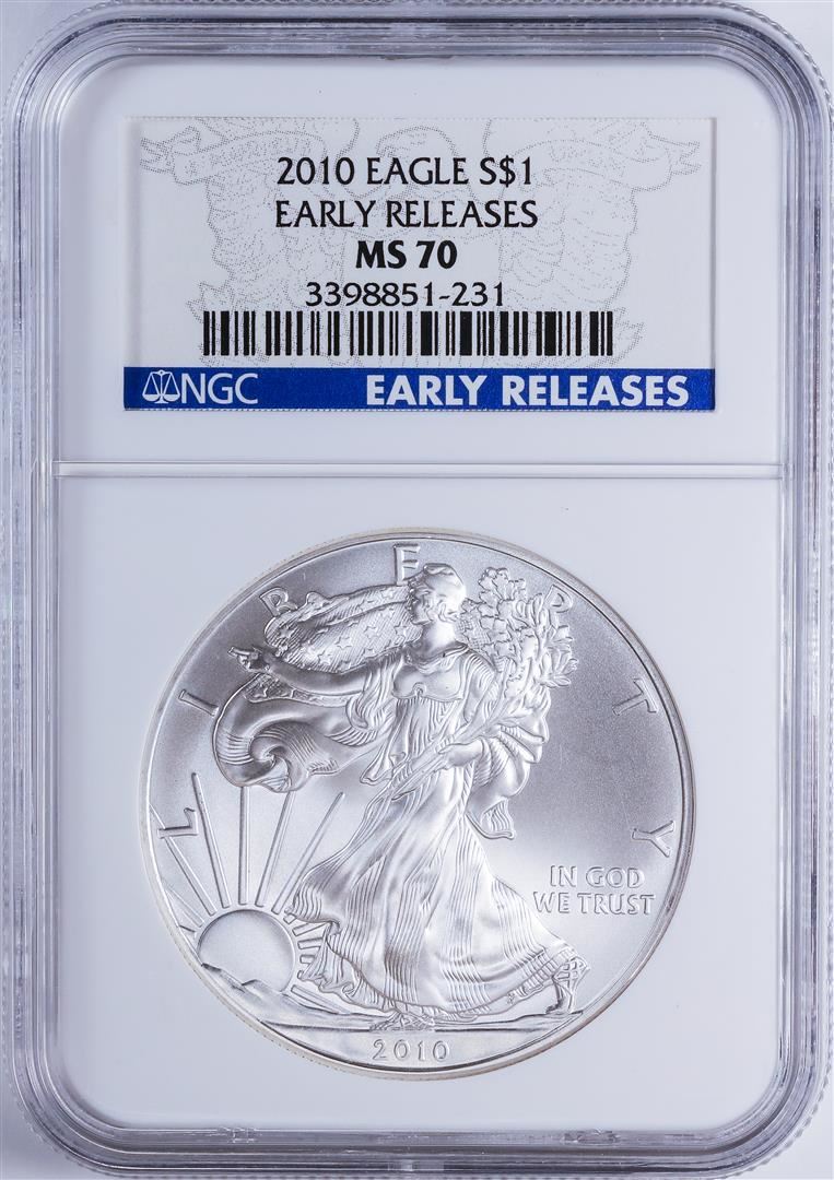 One 2010 $1 American Silver Eagle NGC MS70 Early Releases.