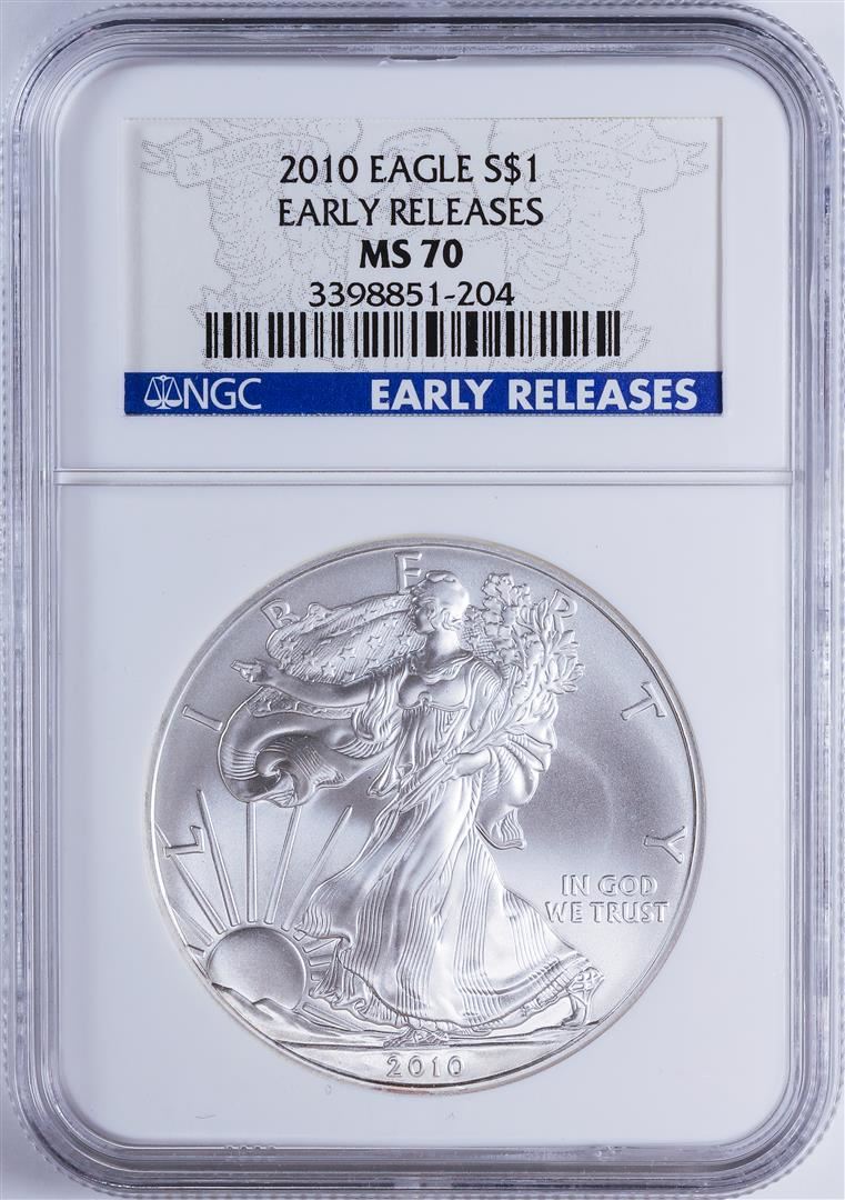 One 2010 $1 American Silver Eagle NGC MS70 Early Releases.