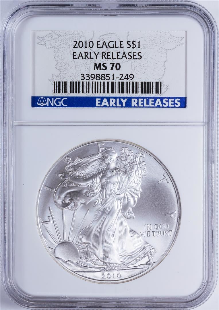 One 2010 $1 American Silver Eagle NGC MS70 Early Releases.