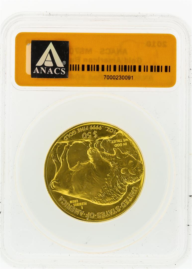 One 2010 ANACS MS70 First Day $50 American Buffalo 1 Oz. Gold Coin. ANACS Appraised.
