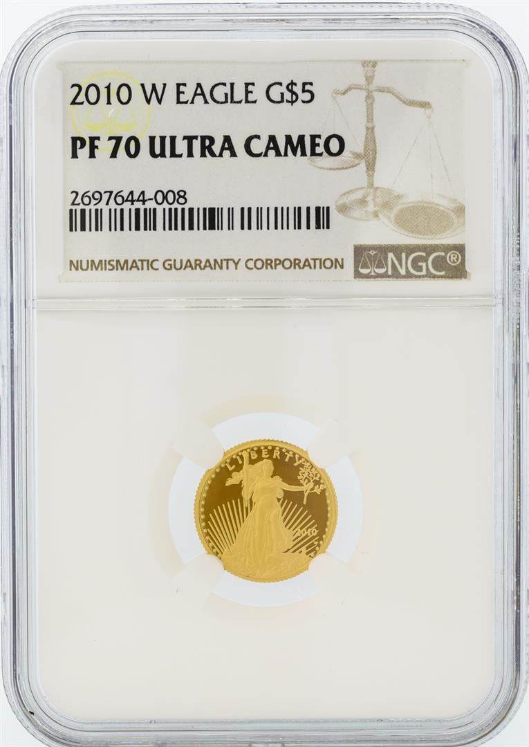 One 2010-W NGC PF 70 Ultra Cameo $5 Liberty Half Eagle Gold Coin.