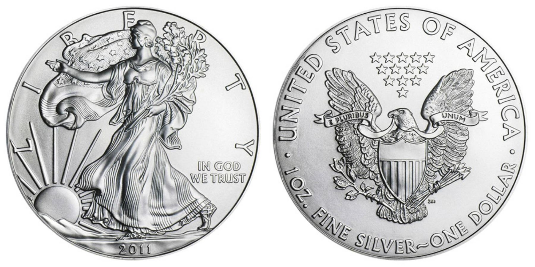 One 2011 American Silver Eagle .999 Fine Silver Dollar Coin.