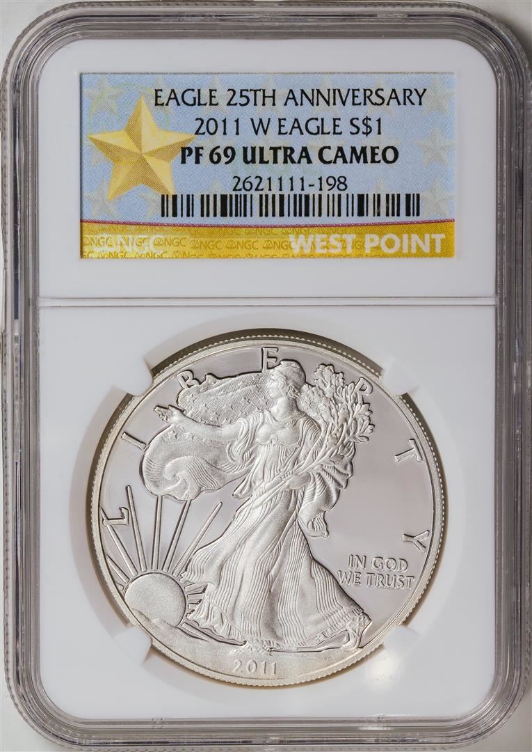 One 2011-W American Silver Eagle .999 Fine Silver Dollar Coin NGC PF69 Ultra Cameo.