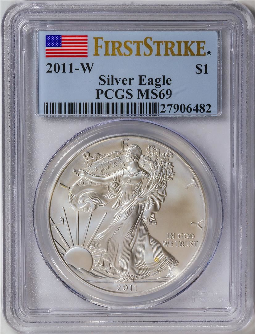 One 2011-W American Silver Eagle .999 Fine Silver Dollar Coin PCGS MS69.