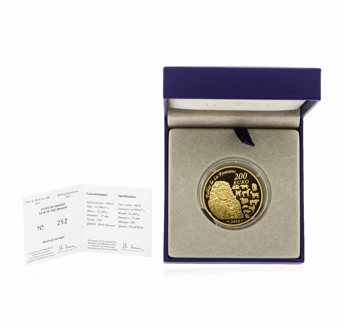 One 2012 .9999 Fine 1 oz Gold 200 Euro Year of the Horse Lunar Series. Only 500 minted, very rare. A must have for your collection. Comes with the original box and papers. Number 252/500.