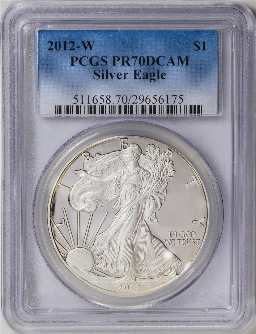One 2012-W American Silver Eagle.999 Fine Silver Dollar Coin PCGS PR70DCAM.