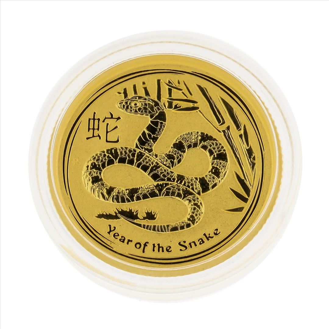 One 2013 $15 Australia 1/10 oz Lunar Year of the Snake Gold Coin BU.