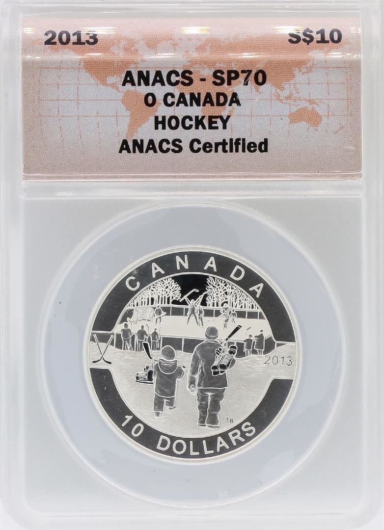 2013 ANACS SP70 $10 O Canada Hockey Silver Coin(9th in a series of 12). ANACS Appraised.