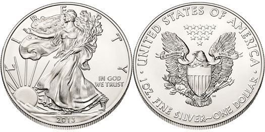 One 2013 American Silver Eagle .999 Fine Silver Dollar Coin. A great addition to any beginner or advanced coin collector's collection!