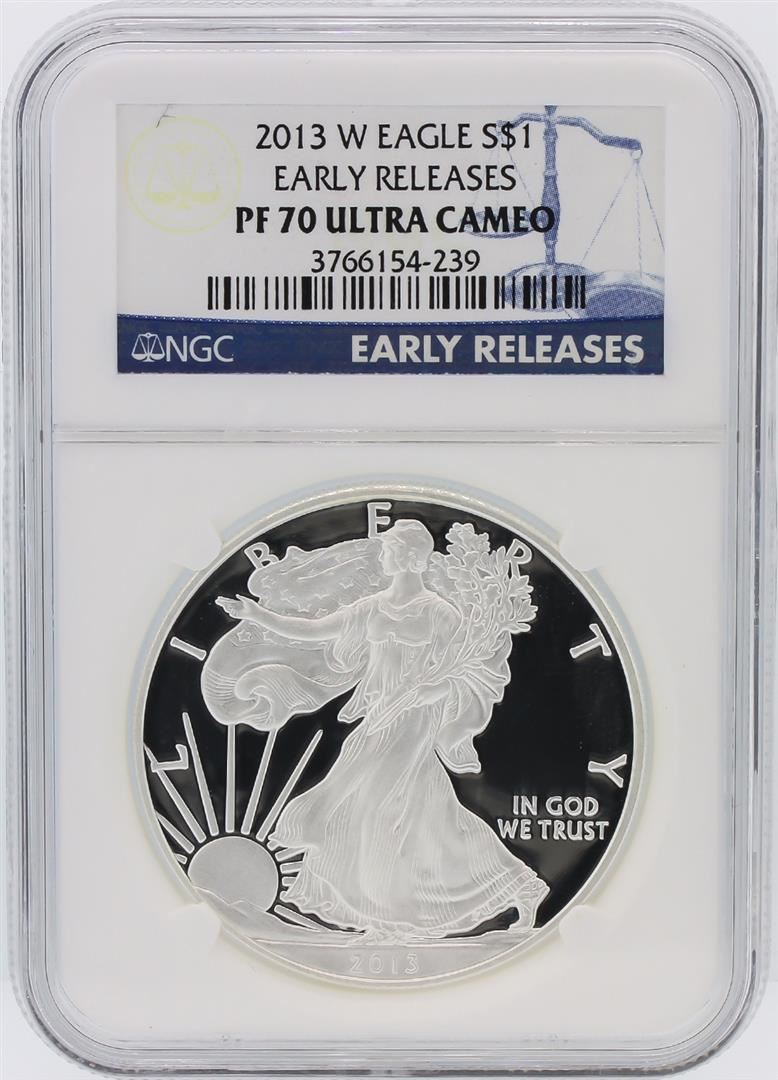 One 2013-W NGC Graded PF70 Ultra Cameo $1 American Silver Eagle Silver Coin. NGC Certified.