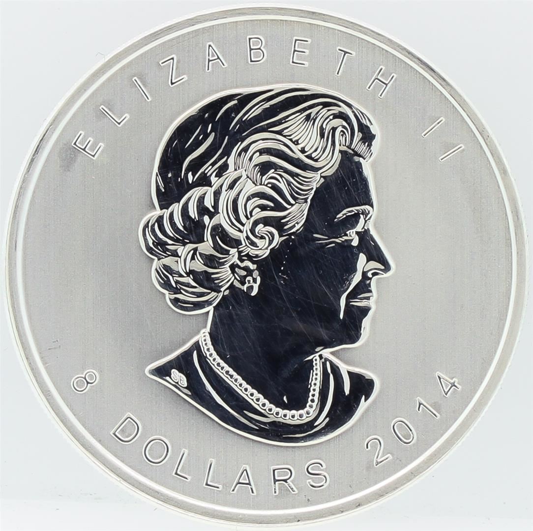One 2014 Canada 1.5 oz Silver $8 Artic Fox Gem BU Coin. Contains 1.5 oz of .9999 fine Silver.