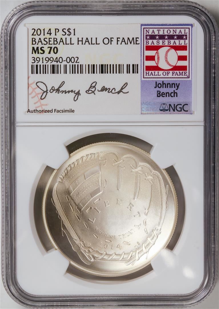 One 2014-P Johnny Bench Baseball Hall of Fame Dollar Coin NGC MS70.
