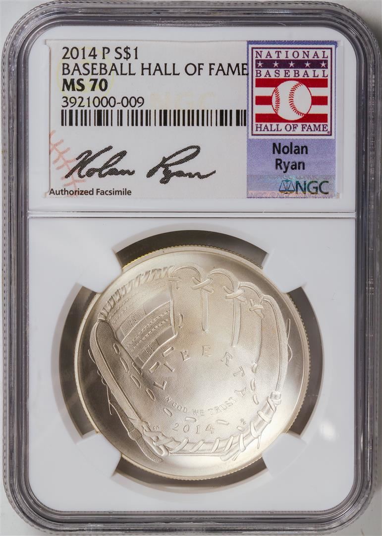 One 2014-P Nolan Ryan Baseball Hall of Fame Dollar Coin NGC MS70.