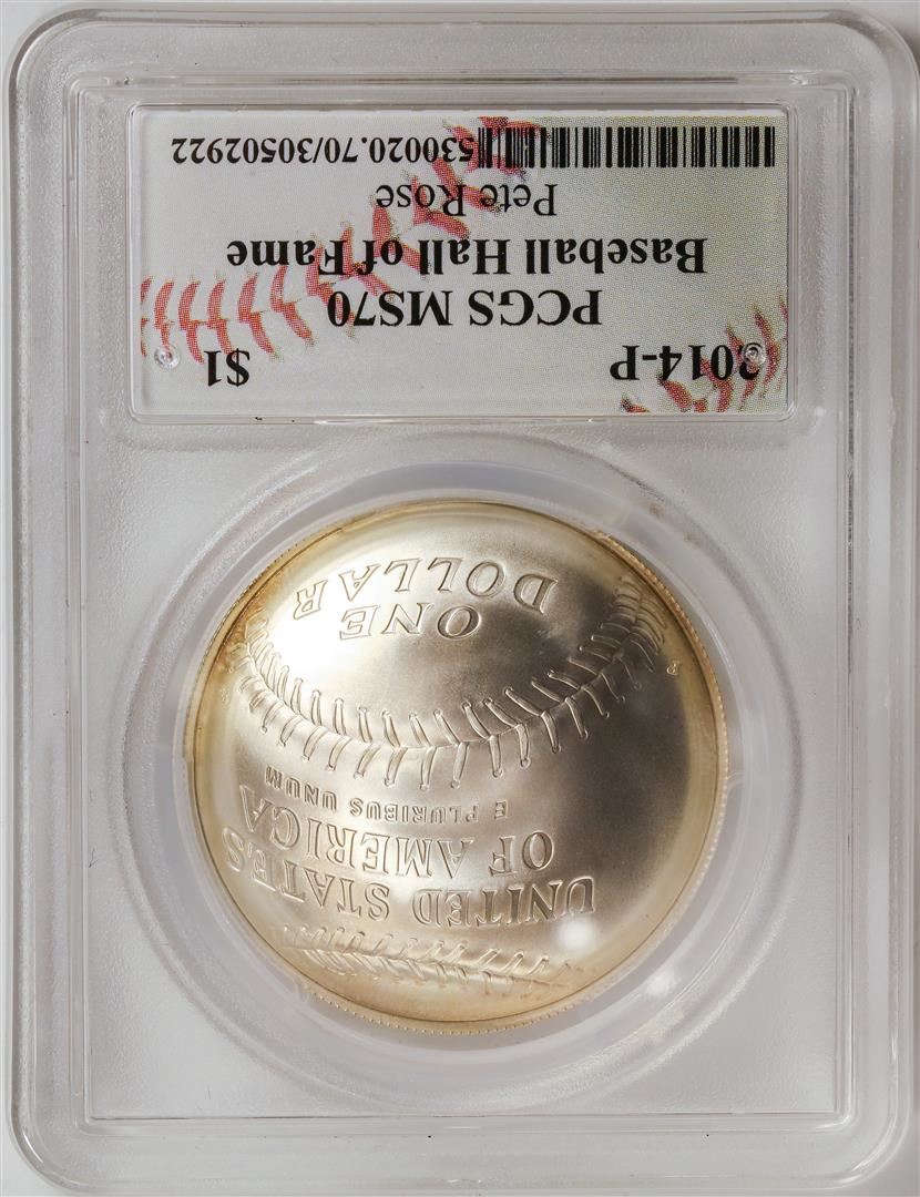 One 2014-P Pete Rose Baseball Hall of Fame Dollar Coin PCGS MS70.