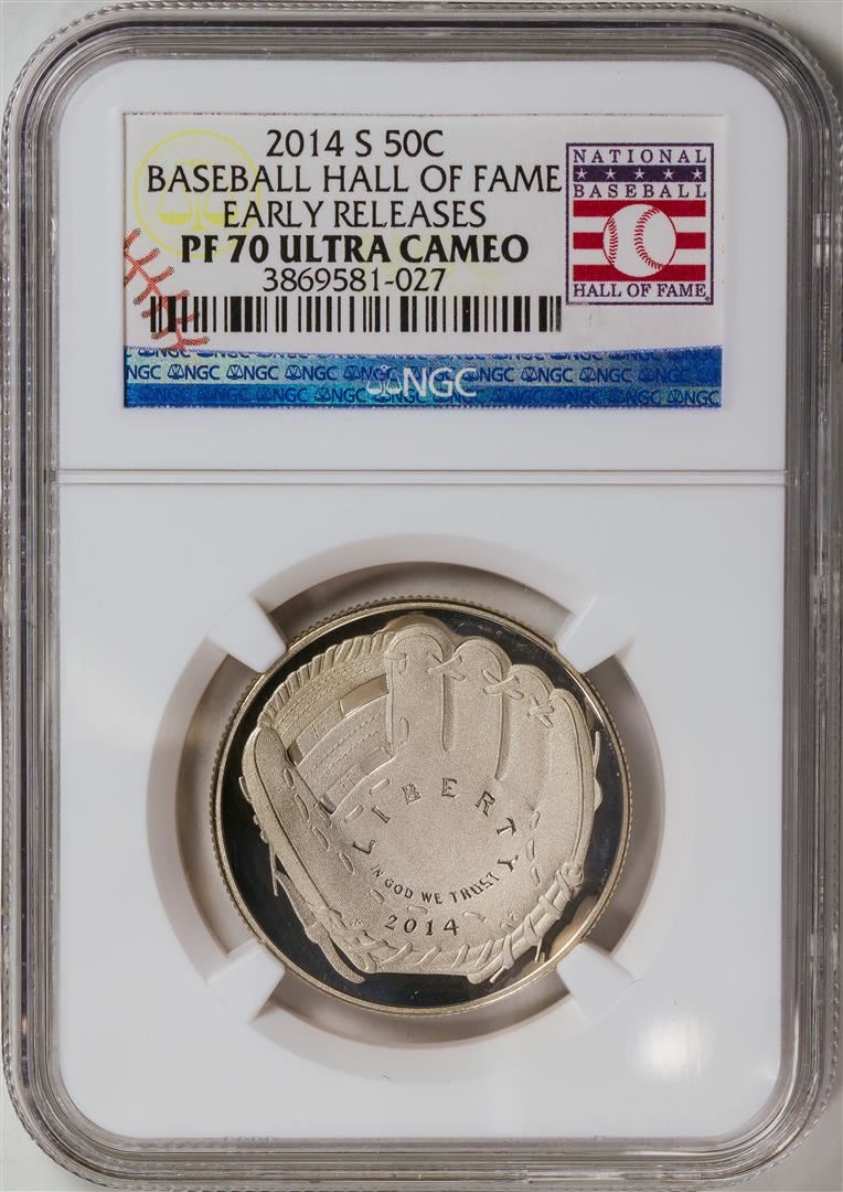 One 2014-S National Baseball Hall of Fame Dollar Coin NGC PF70 Ultra Cameo.