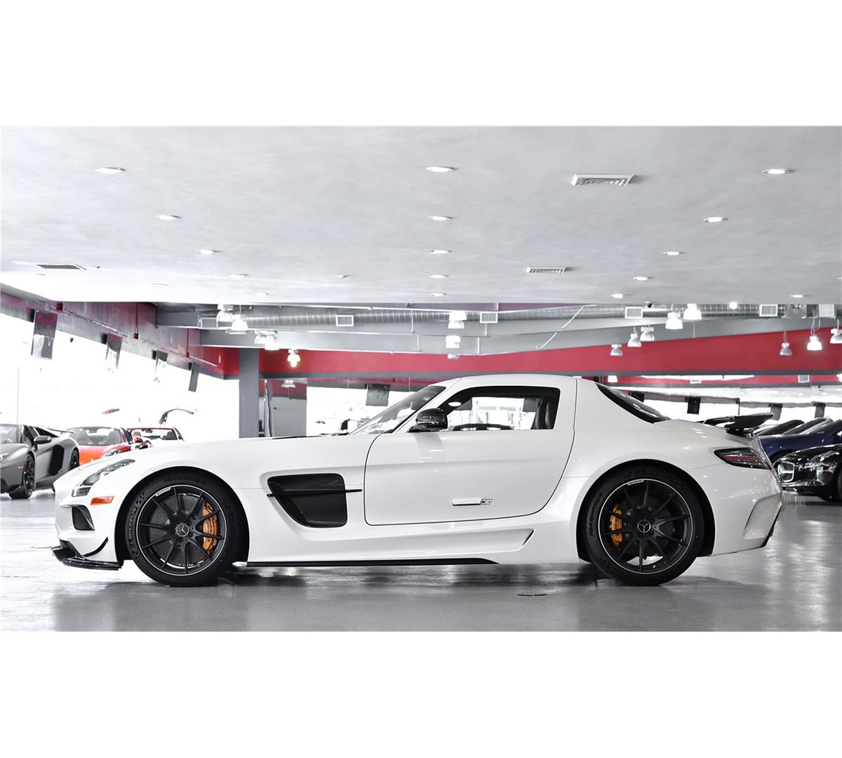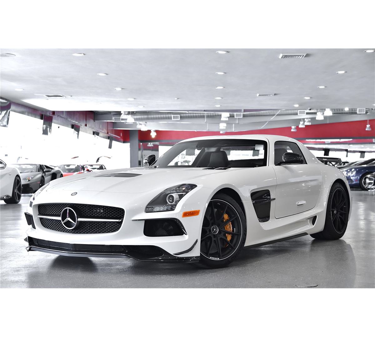 This 2014 White Mercedes-Benz SLS AMG Black Series Coupe comes equipped with a 6.2L V-8 cyl engine and a 7 speed automatic with auto-shift transmission and rear wheel drive. It goes from 0-60 MPH in 3.5 seconds. Vin #WDDRJ7HA2EA010627.