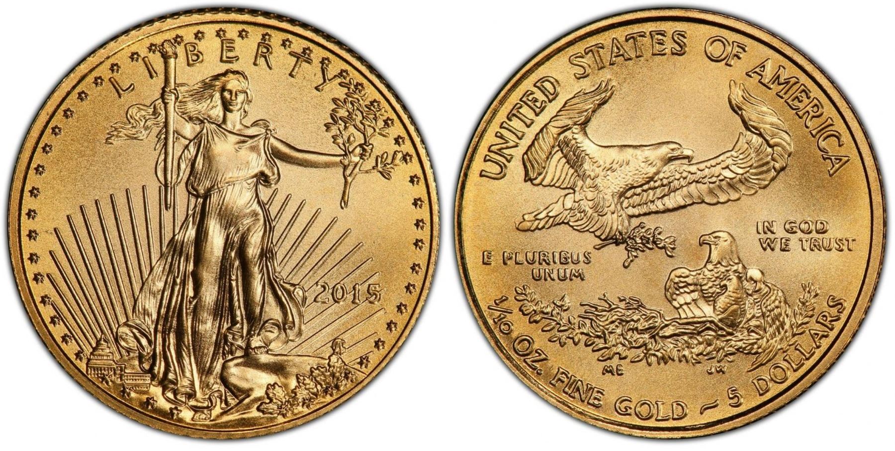 One 2015 $5 American Eagle Gold Coin.