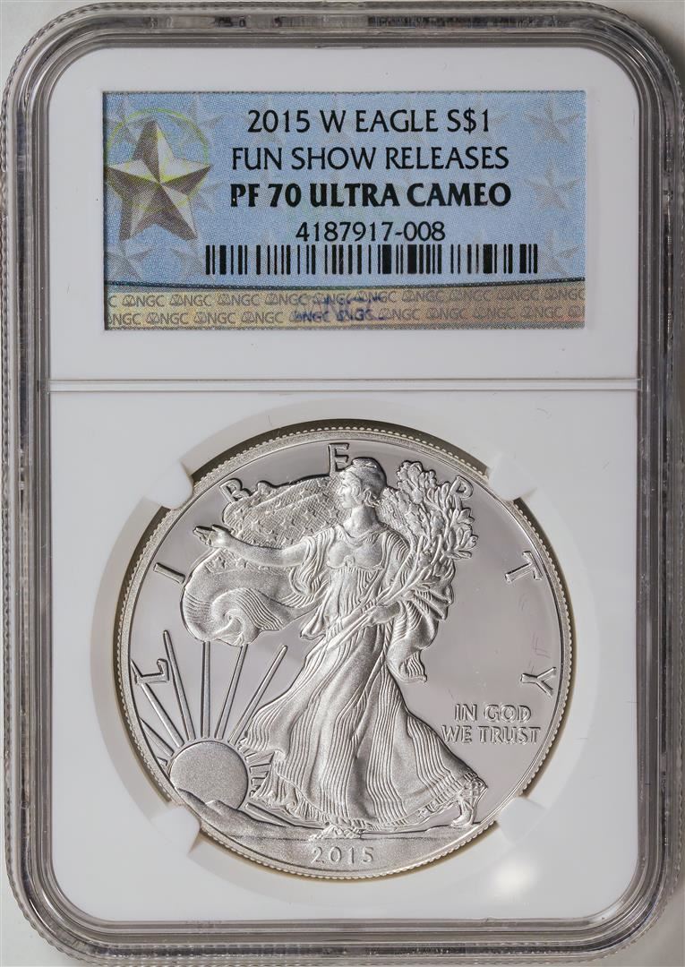 One 2015-W American Silver Eagle .999 Fine Silver Dollar Coin NGC PF70 Ultra Cameo.
