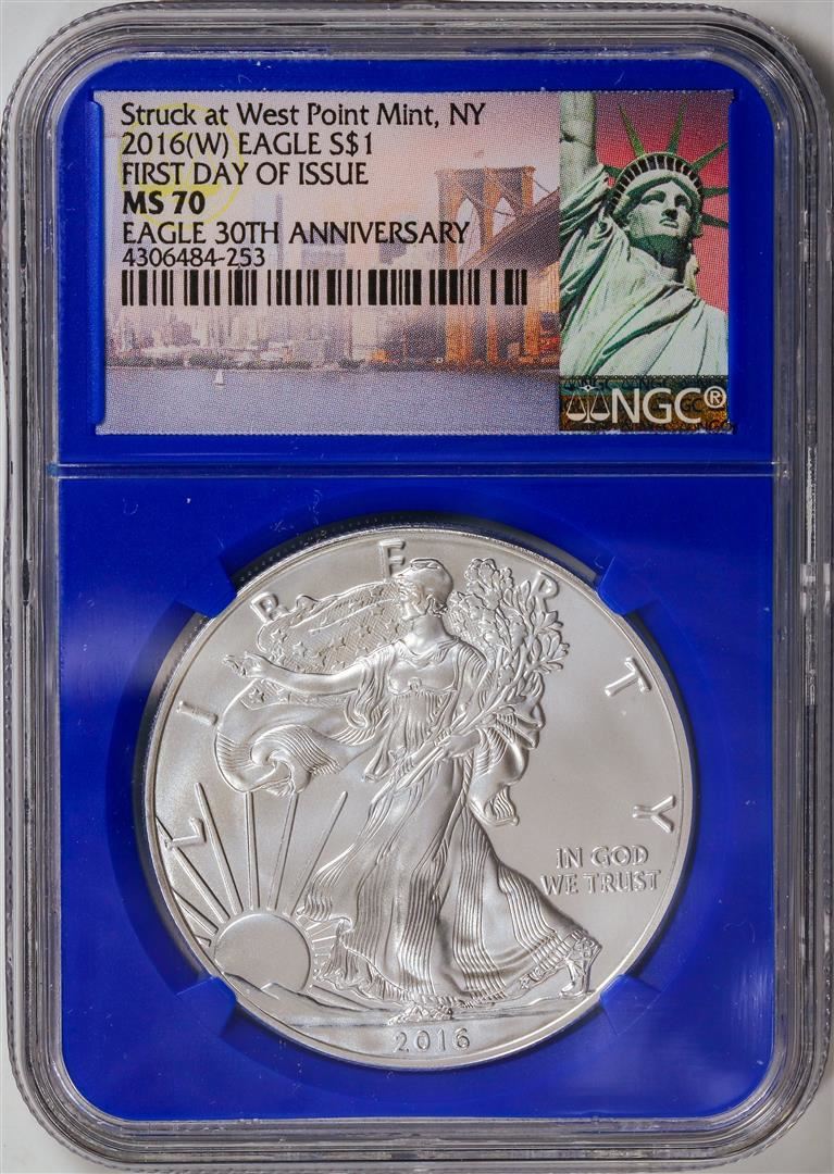 One 2016-W American Silver Eagle .999 Fine Silver Dollar Coin NGC MS70.