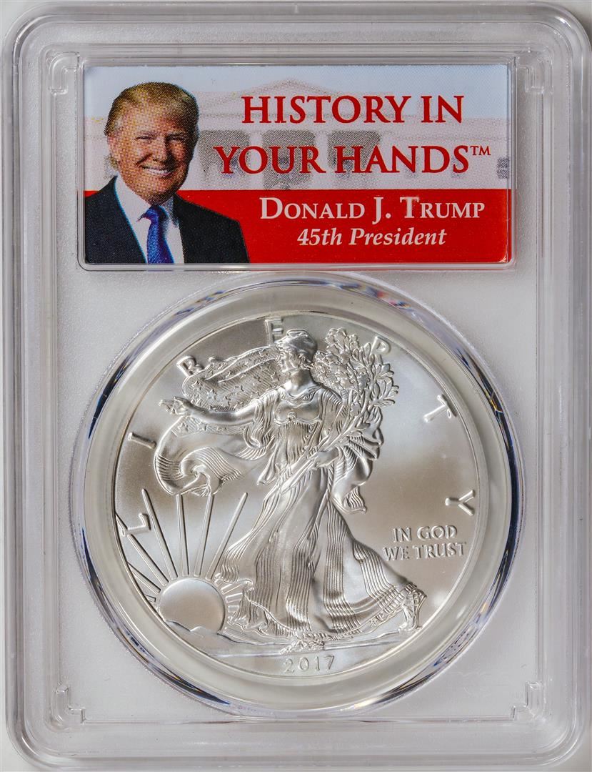 One 2017 American Silver Eagle .999 Fine Silver Dollar Coin PCGS MS70.