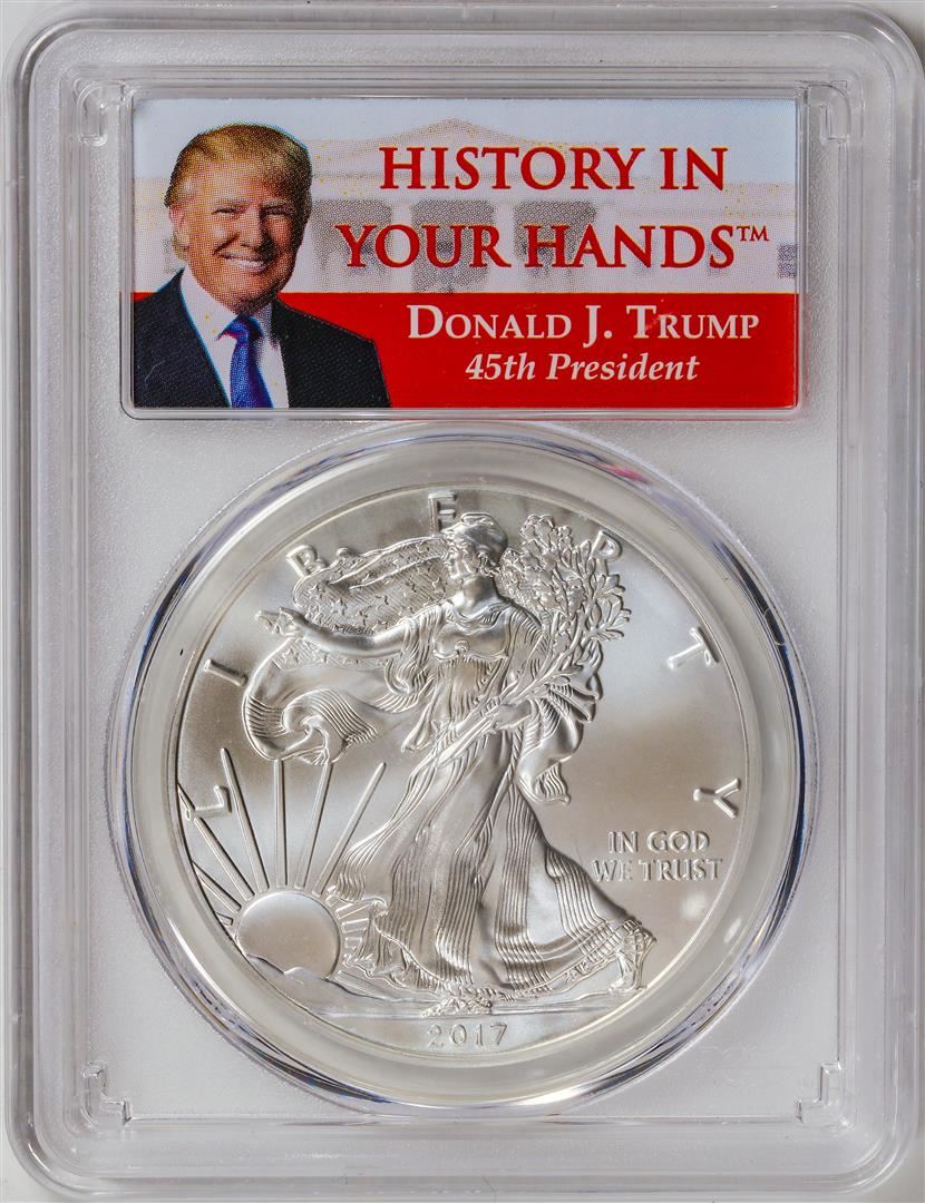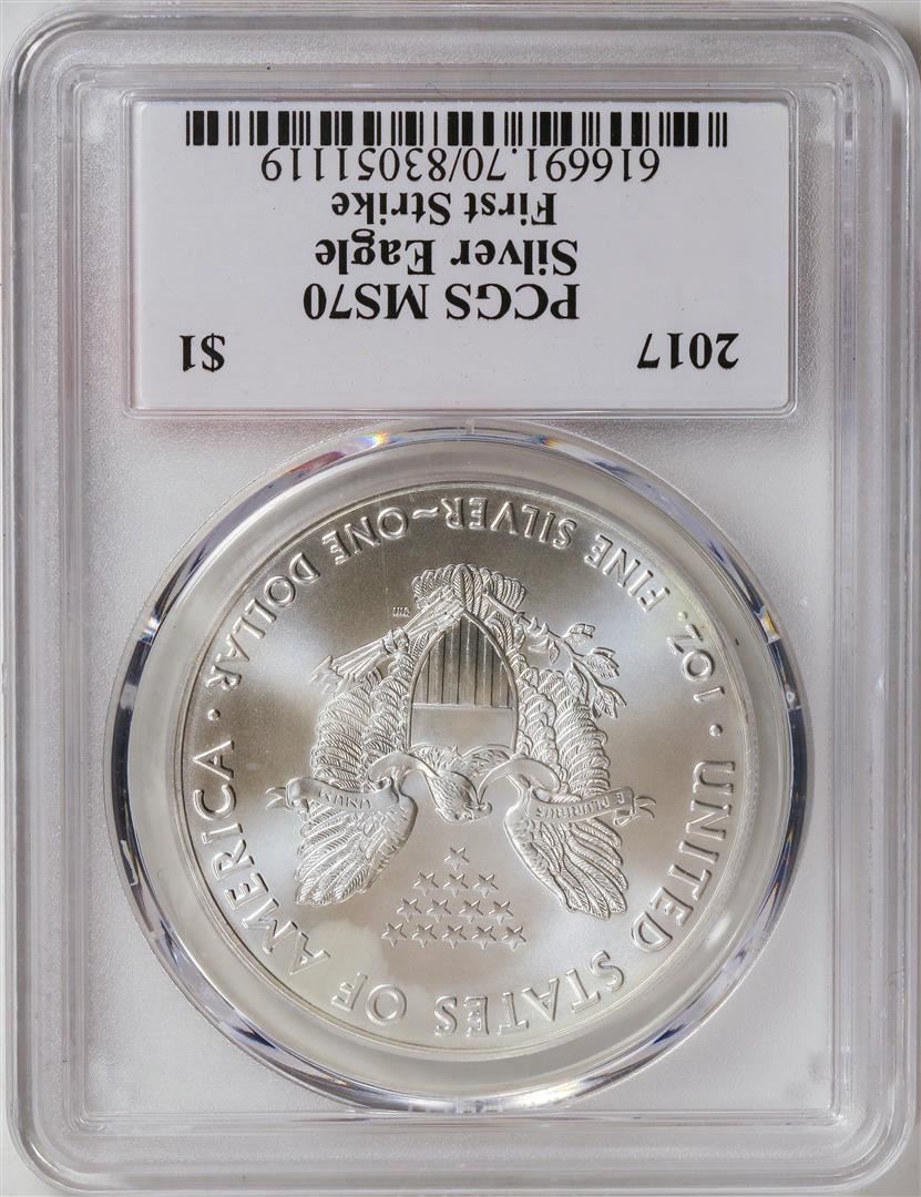 One 2017 American Silver Eagle .999 Fine Silver Dollar Coin PCGS MS70.