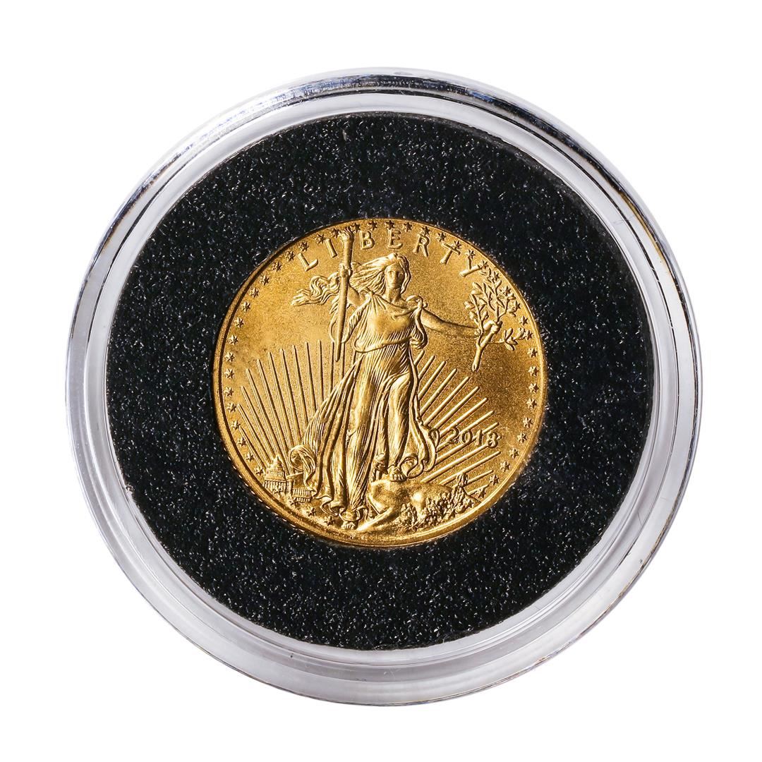 One 2018 $5 American Eagle Gold Coin.