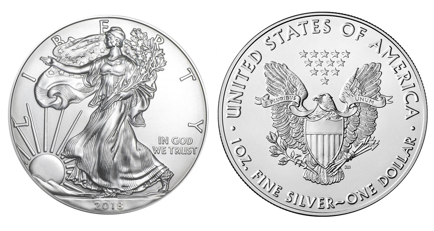 One 2018 American Silver Eagle .999 Fine Silver Dollar Coin.