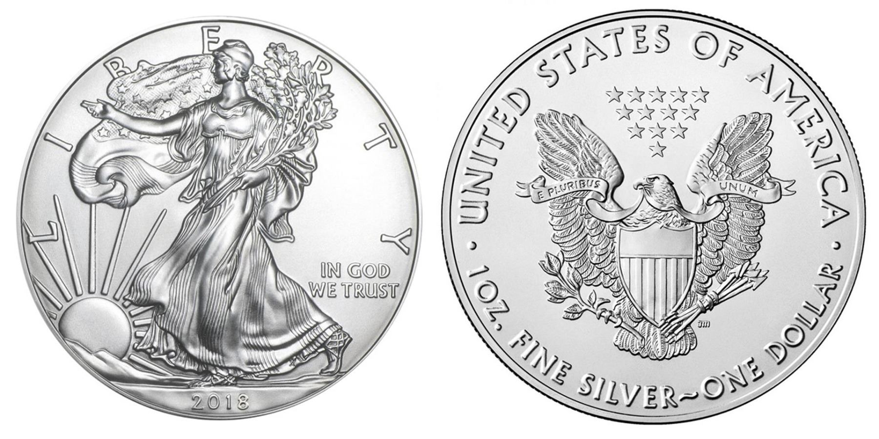 One 2018 American Silver Eagle .999 Fine Silver Dollar Coin.