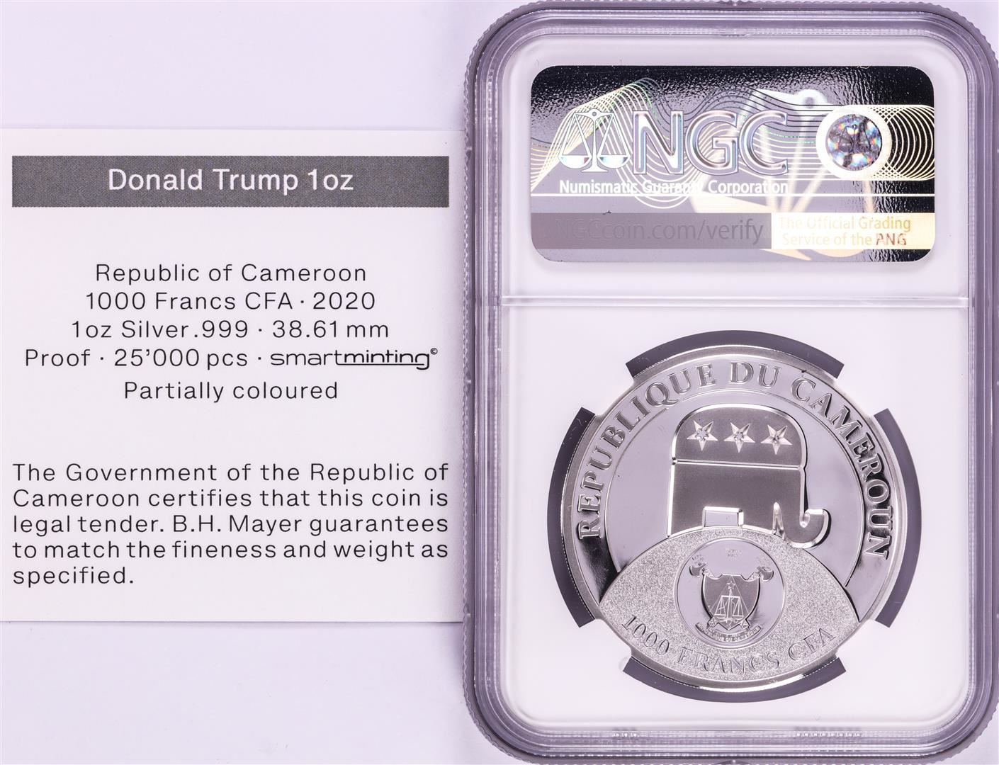 One 2020 Cameroon S1000F Donald Trump All Together High Relief PF 70 Ultra Cameo 1oz Silver .999 Coin.