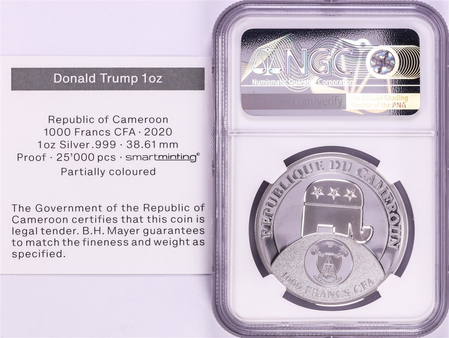 One 2020 Cameroon S1000F Donald Trump All Together High Relief PF 70 Ultra Cameo 1oz Silver .999 Coin.
