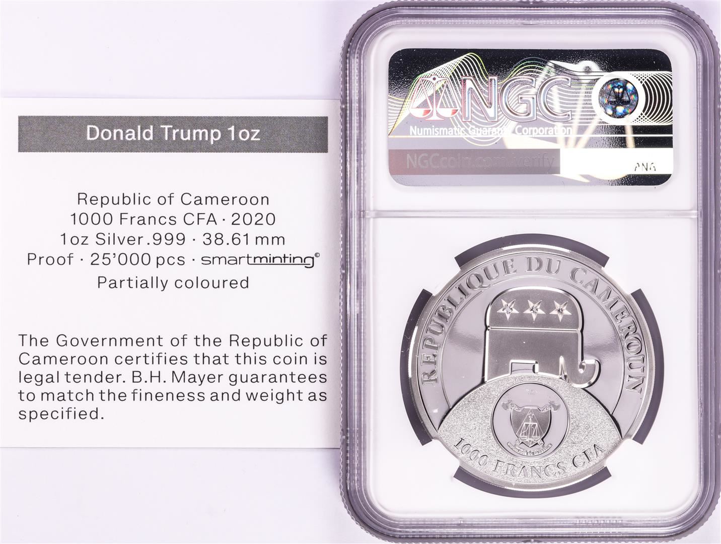 One 2020 Cameroon S1000F Donald Trump All Together High Relief PF 70 Ultra Cameo 1oz Silver .999 Coin.