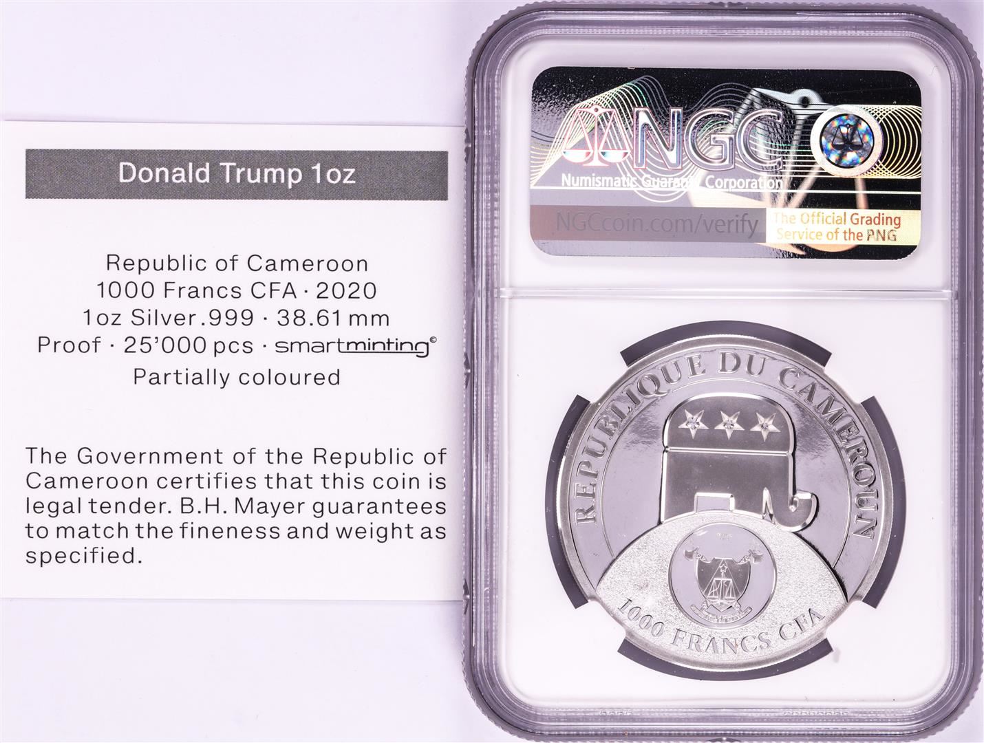 One 2020 Cameroon S1000F Donald Trump All Together High Relief PF 70 Ultra Cameo 1oz Silver .999 Coin.